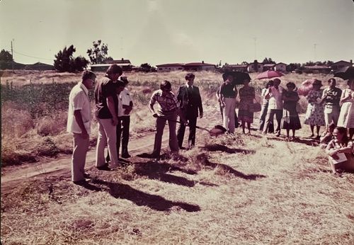 "The ground breaking ceremony was held on a hot day in May. The chairman of the building committee did a good job getting the grading started. (about the only work he did on the project!)"